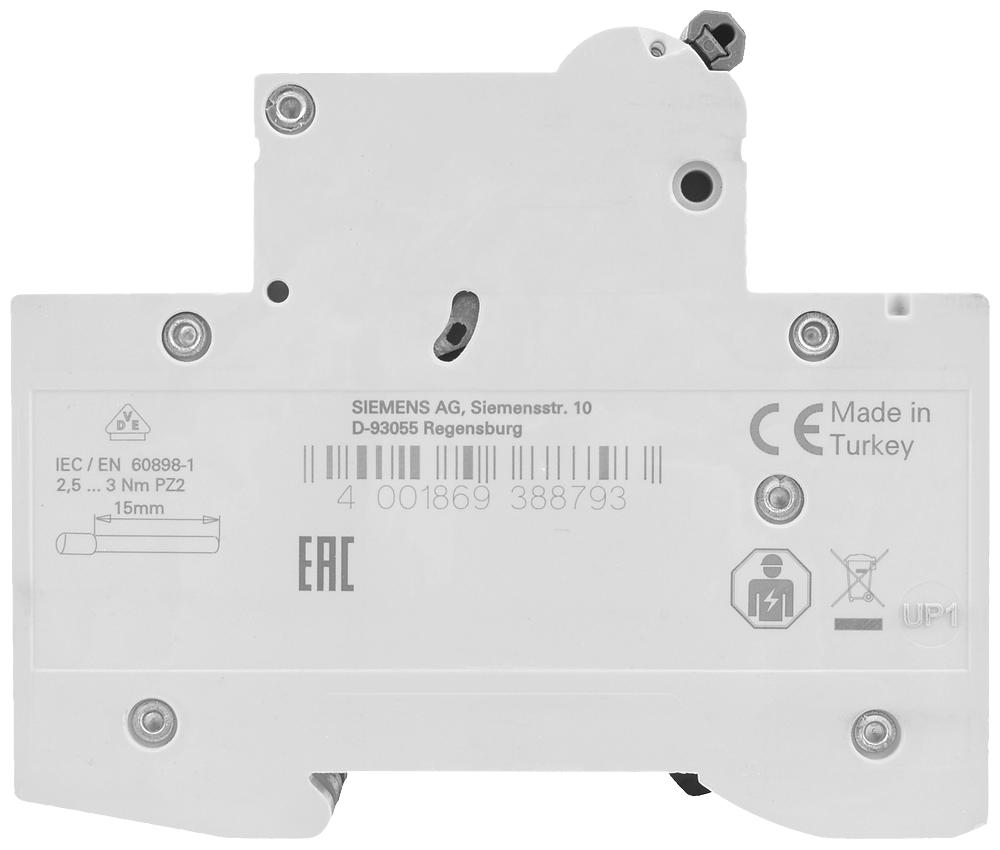 Jednostronny wysuwny zatrzask, ułatwia sprawne zdemontowanie wyłącznika z szyny zasilającej, bez użycia narzędzi