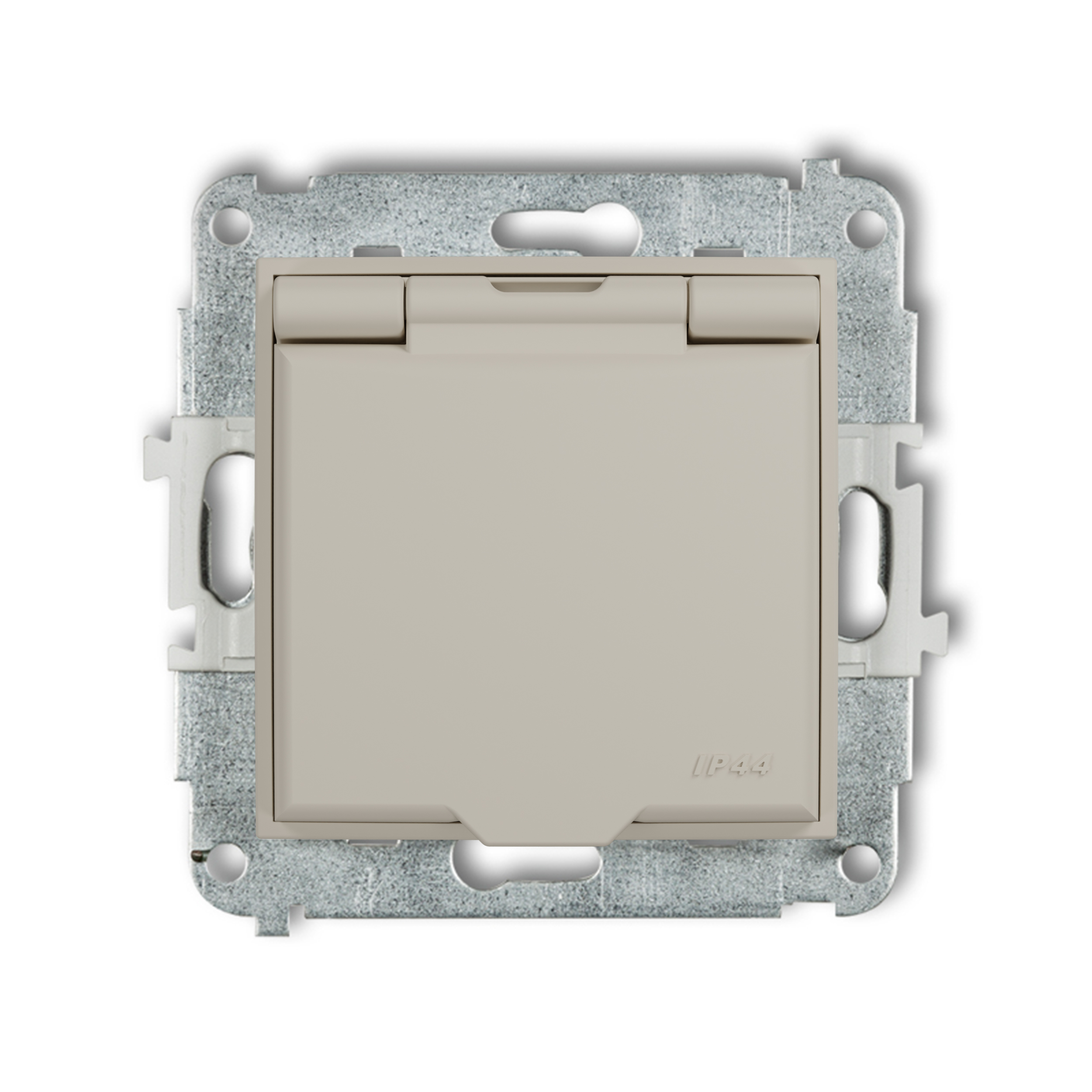 MINI MODUŁ TAUPE GNIAZDO 1X Z/U Z PRZESŁONAMI Z KLAPKĄ IP44 ZACISKI ŚRUBOWE 16A 250V