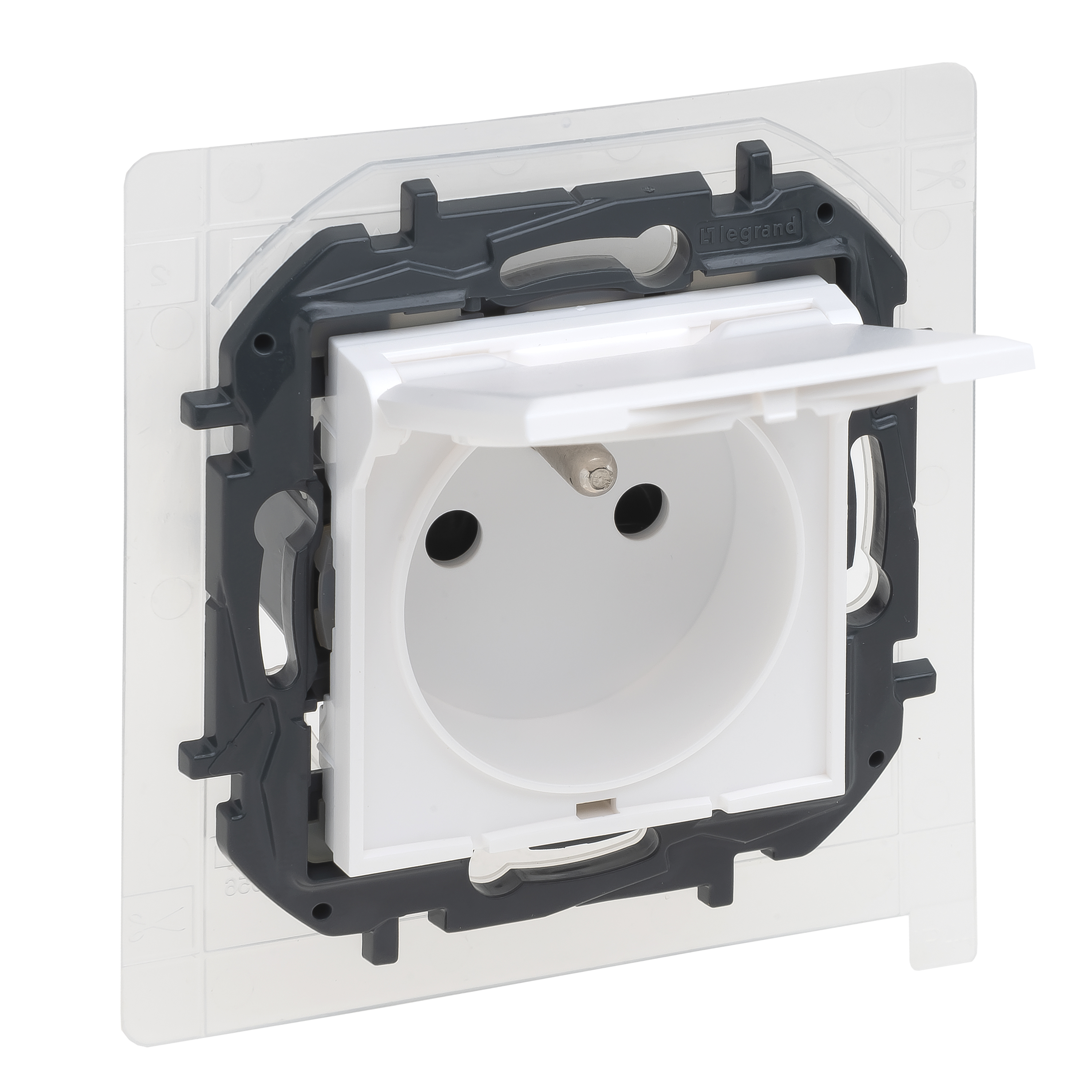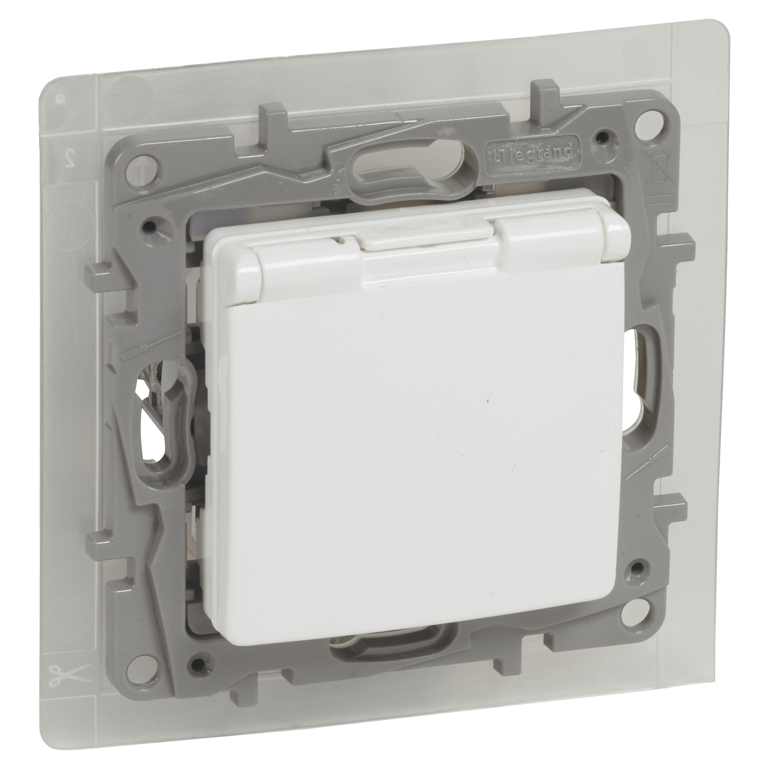 NILOE 2 MODUŁ BIAŁY GNIAZDO 1X Z/U Z PRZESŁONAMI Z KLAPKĄ IP44 ZACISKI ŚRUBOWE 16A 250V