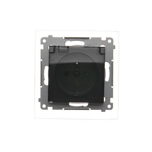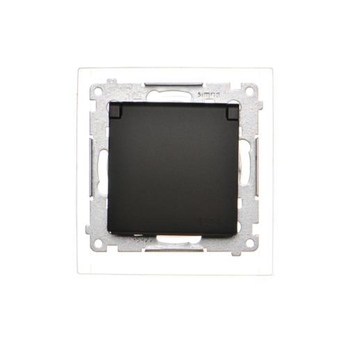 SIMON 54 MODUŁ CZARNY MAT GNIAZDO 1X Z/U Z PRZESŁONAMI Z KLAPKĄ IP44 ZACISKI ŚRUBOWE 16A 250V