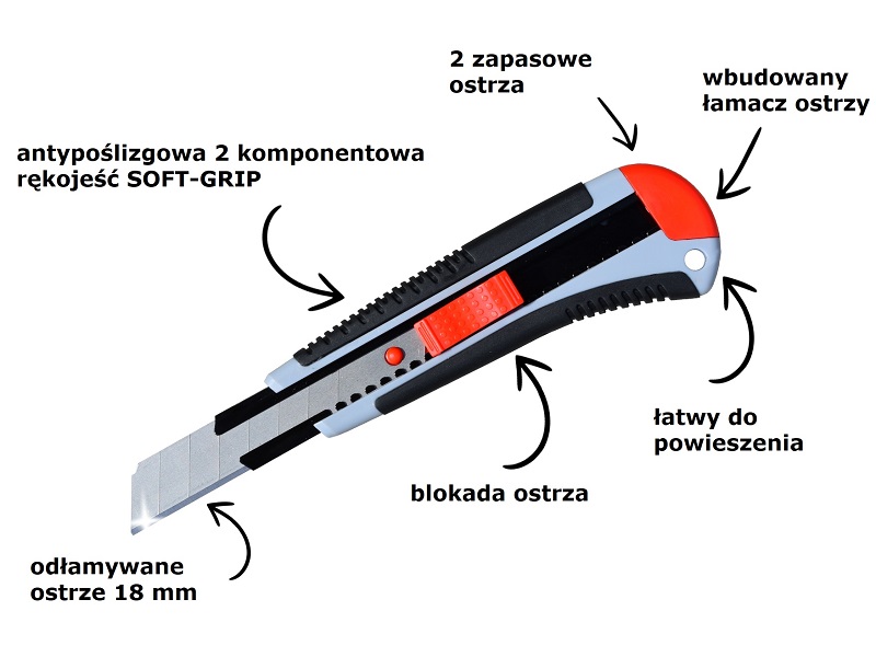 - odłamywalne ostrze o szerokosci 18 mm