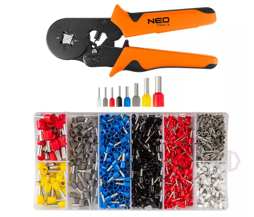 Zestaw NEO TOOLS zawiera aż 1200 sztuk tulejek zaciskowych, zapakowanych w poręczne pudełko z tworzywa sztucznego