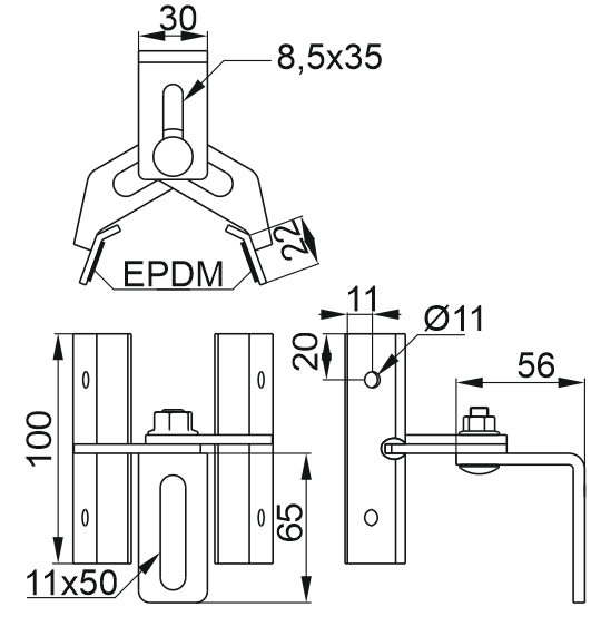 - uchwyt wyposażony w gumę uszczelniającą EPDM przyklejoną od spodu