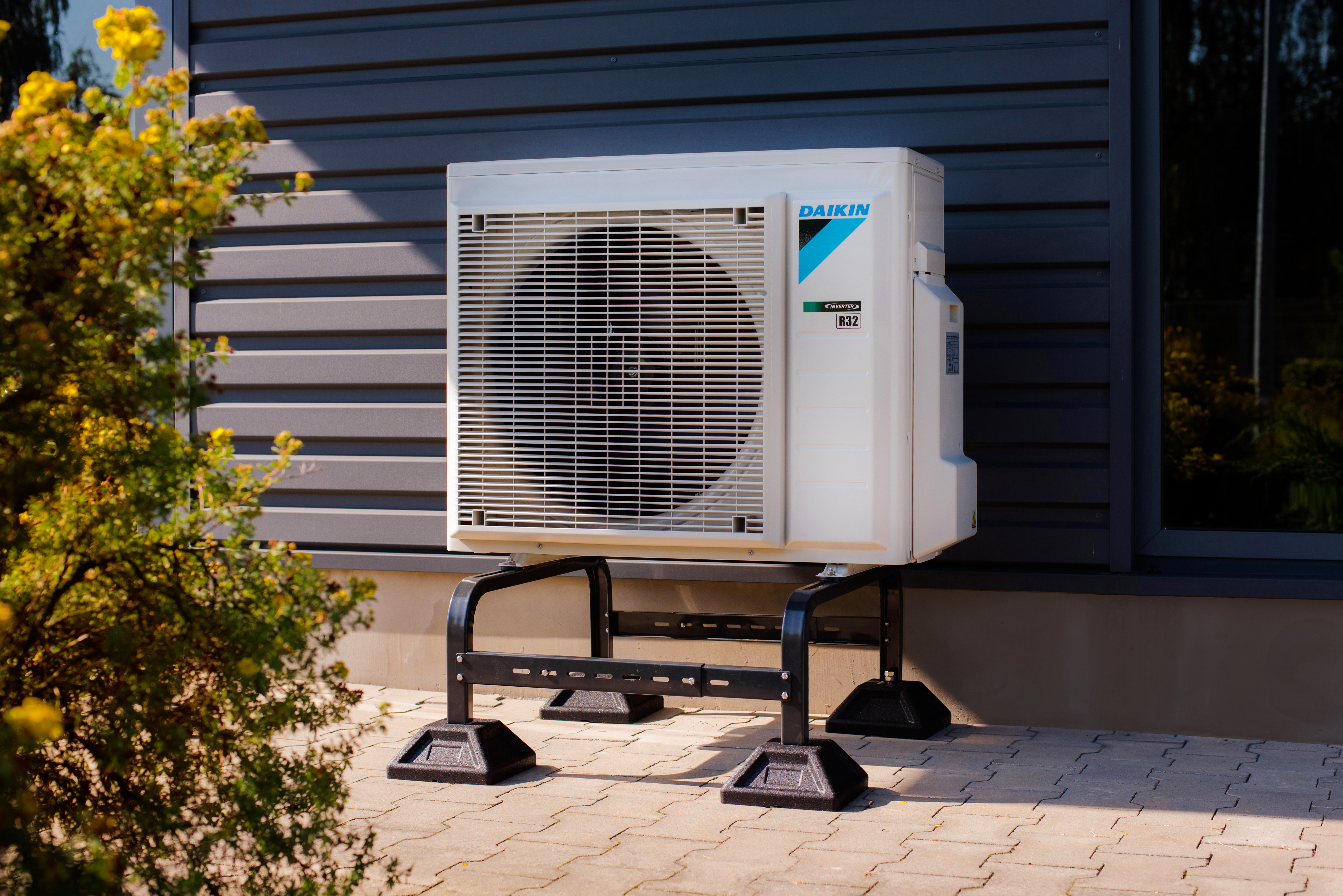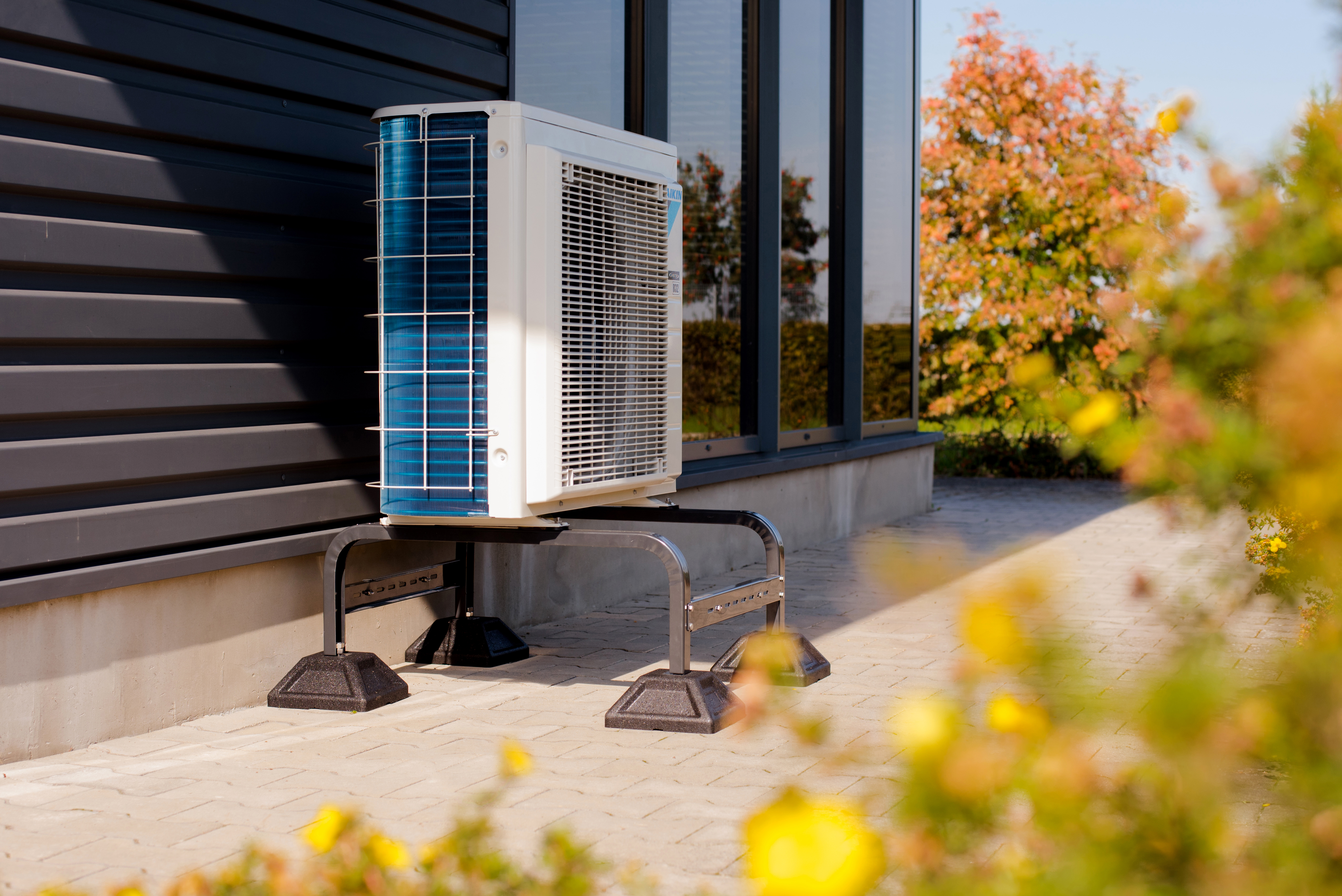 Antywibracyjna podstawa przeznaczona do bezinwazyjnego montażu pomp ciepła i skraplaczy klimatyzatorów montowanych na gruncie lub dachach płaskich o maksymalnym spadku do 5%.
